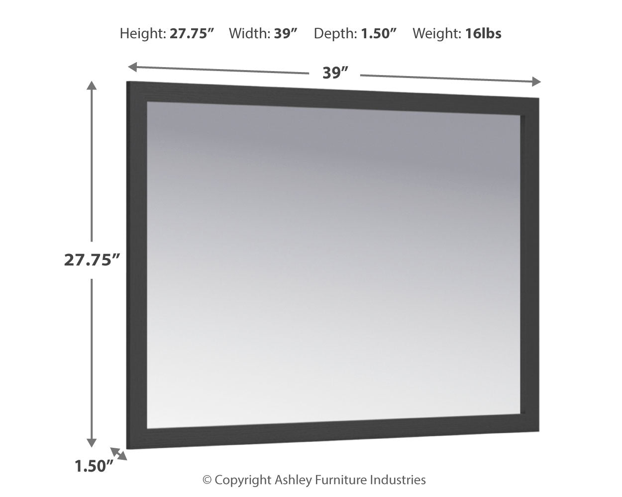| Bedroom Mirror | 39" | 1" | 28" |