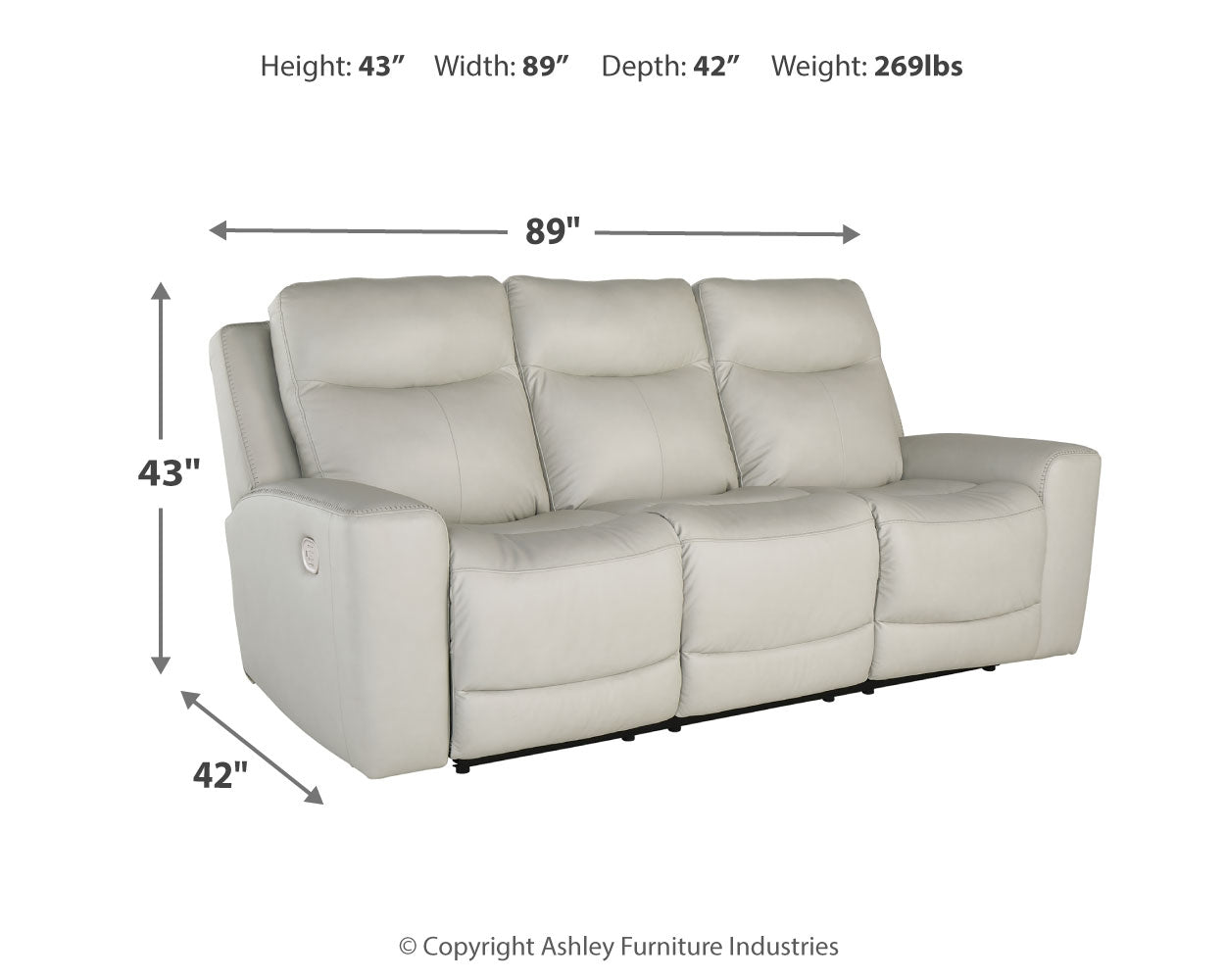 | PWR REC Sofa with ADJ Headrest | 89" | 42" | 43" |